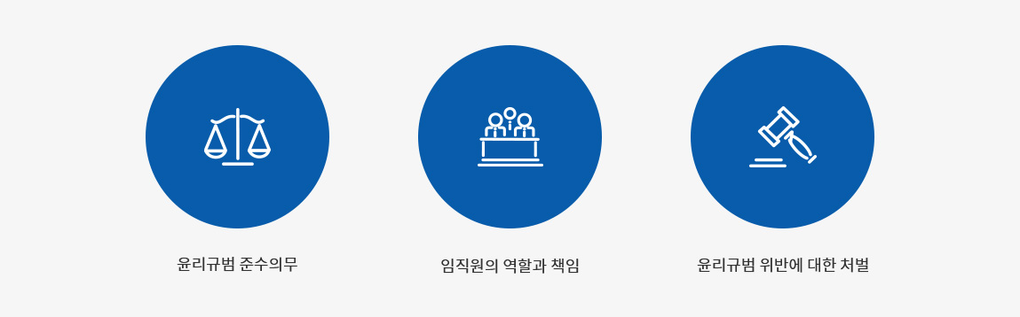 윤리규범을 위반한 임직원은 관련 규정에 따라 해고를 포함한 징계를 받을 수 있다. 특히 직장내 괴롭힘, 성윤리 위반, 금품수수, 횡령, 정보조작에 대해서는 무관용 원칙을 적용한다.
