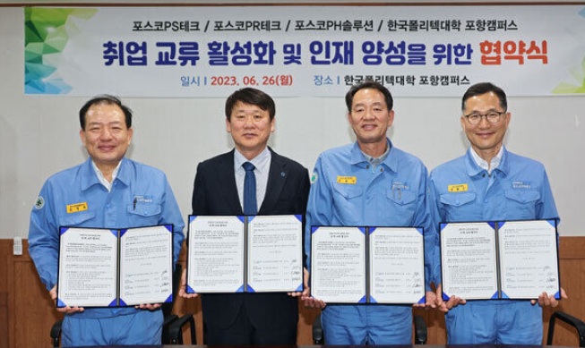 포스코 정비사업회사 포스코PH솔루션·포스코PS테크·포스코PR테크와 우수한 인재 양성을 위한 업무협약(MOU)을 맺었다.
